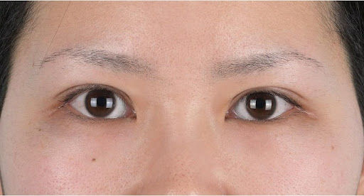 知人に聞いて来院。目の開きを良くするため腱膜前転術法を組み合わせた重瞼術を行っています。軽い腫れ瞼なので、眼窩脂肪も少し除去しました」。術後は目を開けやすくなり、頭痛もなくなりました。可愛いと言われるそうです。術後の傷跡もあまり目立ちません。